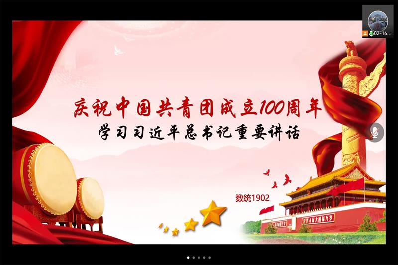 翔宇网5月12日电(记者 刘祈岑)为深入贯彻习近平总书记在庆祝中国共青团成立100周年大会上的重要讲话精神,激励团员青年以实现中华民族伟大复兴为己任,数统1902班于5月11日下午开展了“庆祝中国共青团成立100周年 学习习近平总书记重要讲话”线上主题团日活动。活动由团支书陈潇凡主持。