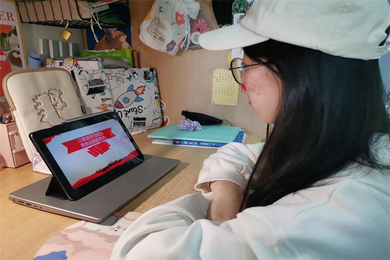 图为同学观看线上团日活动。记者 刘祈岑 摄