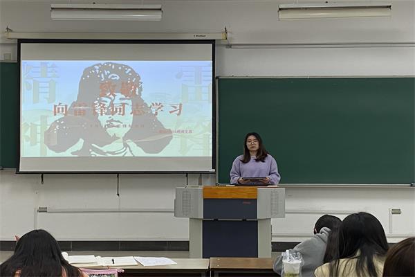 活动伊始,团支书徐钰向我们介绍了雷锋精神的内涵,并积极鼓励同学们讲一讲自己对雷锋精神的解读。随后,主讲人简单介绍了雷锋的生平和雷锋精神的由来,雷锋于1960年参加人民解放军,并于1962年因公殉职,享年22岁。雷锋精神则是以雷锋的精神为基本内涵,在实践中不断丰富和发展着的革命精神。活动最后,全体成员共同观看雷锋纪录片,视频里概括了雷锋生平的几个重要事件,视频中雷锋乐于助人,爱国爱党,无私奉献的精神感动了部队里的战士、乡亲民众,以及毛主席。有助于同学们进一步了解雷锋以及雷锋精神。