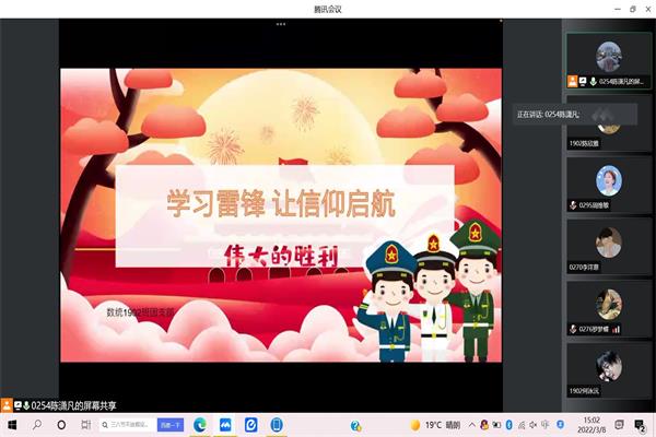 翔宇网3月8日电 记者(刘祈岑)为积极培育和践行社会主义核心价值观,弘扬雷锋精神。3月8日下午,数统1902班开展了线上“学习雷锋,让信仰启航”主题团日活动,本次团日活动由团支书陈潇凡主持。
