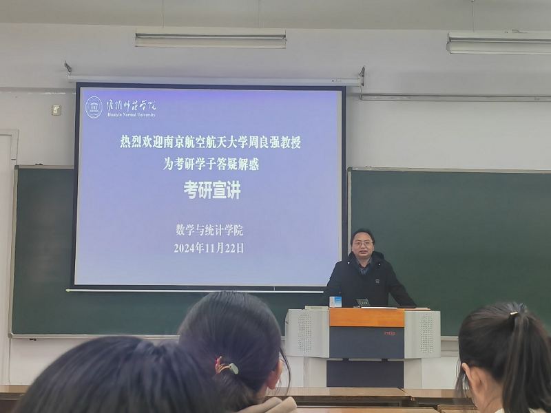 为加强学院学风建设,帮助22级考研学生早日明确考研方向,并帮助他们深入了解考研专业的具体情况,11月22日下午,数学与统计学院邀请南京航空航天大学周良强教授为学生开展考研宣讲活动。