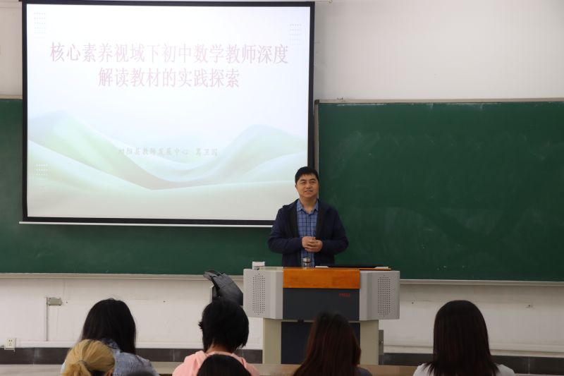 为进一步加深师范生对教材教法的理解,传授职业感悟,指引职业发展方向,4月8日,淮阴师范学院数学与统计学院邀请宿迁市高中数学学科带头人,泗阳县教师发展中心师资发展科科长葛卫国老师来校举办“核心素养视域下初中教材解读能力的实践探索”师范生素质能力专场报告。