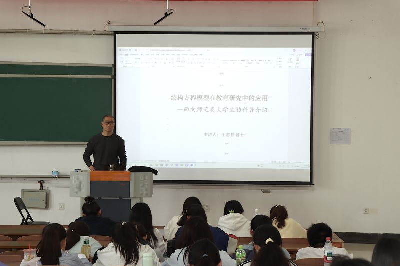 为帮助师范生架起教育理论与科学实证的桥梁,助力“研究型教师”成长,3月26日下午,数学与统计学院开展以“结构方程模型在教育研究中的应用——面向师范类大学生的科普介绍”为主题的文化素质讲座。本次讲座由王志祥老师主讲。