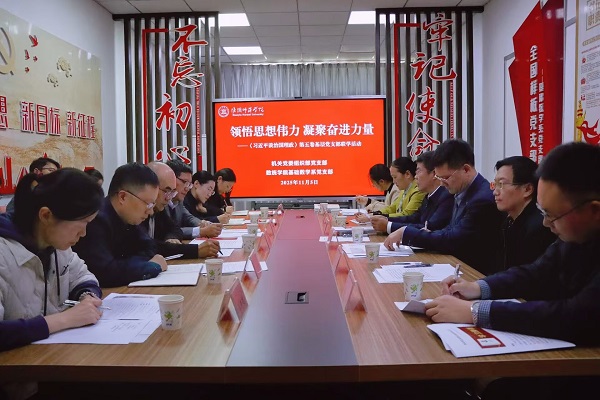 为深化党的创新理论武装,推进党建与业务融合走深走实,系统构建管理服务部门单位党支部与院系党支部联学机制,11月5日下午,淮阴师范学院机关党委组织部党支部与数统学院基础数学系党支部在理工北楼310全国样板党支部工作室开展《习近平谈治国理政》第五卷专题联学活动。校党委书记赵宜江以普通党员身份参加活动并带头领学。活动由党委组织部副部长、组织部党支部书记王涛主持。