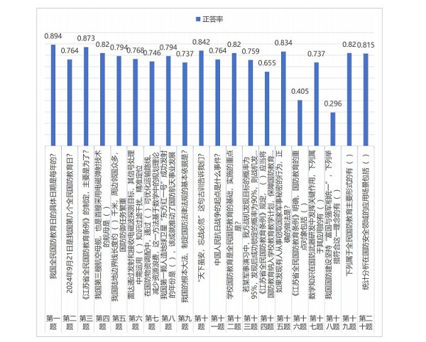 知识竞赛以线上问卷竞赛的方式进行,涵盖中外历史文化、校园规章制度、生活常识、军事科技发展等领域??继饽谌萏谌荩⒃诖嘶∩嫌兴卣辜由?,难易并举,具有一定的区分度,能更好地检测学生国防知识储备,便于学院更好地加强文明建设,推广国防知识,宣讲国家安全,激发数统学子的爱国情怀。