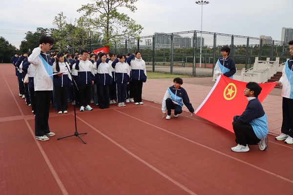 活动最后,在2504班新生代表钟思宇的带领下,2025上半年发展团员庄严列队,高举右拳进行入团宣誓。铮铮誓言铿锵有力、回荡现场,全体新团员神情肃穆、态度坚定,用饱满的热情诠释着入团的赤诚与信念。