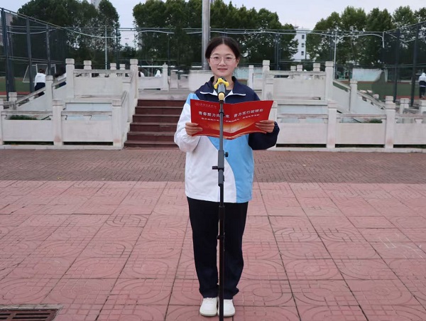 2505班新生代表刘爽分享了自幼萌发的教师梦,以及高三备考因师梦坚持的经历。她呼吁同学们以青春为笔、奋斗为墨,探索数学领域、追光教育事业,将个人理想融入祖国教育发展,书写时代华章。